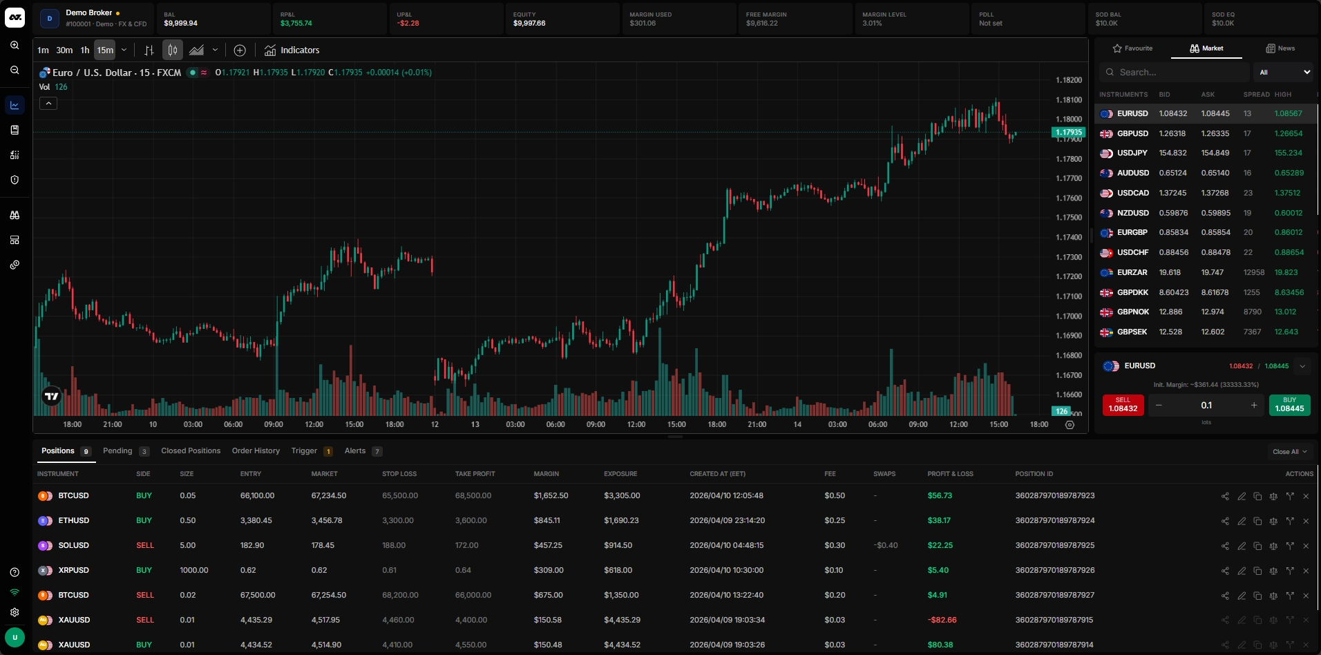 A professional web-based trading terminal for FX, CFDs, and futures. Real-time execution, advanced order types, copy trading, and an integrated journal. Professional charting is powered by the TradingView Advanced Charts library.